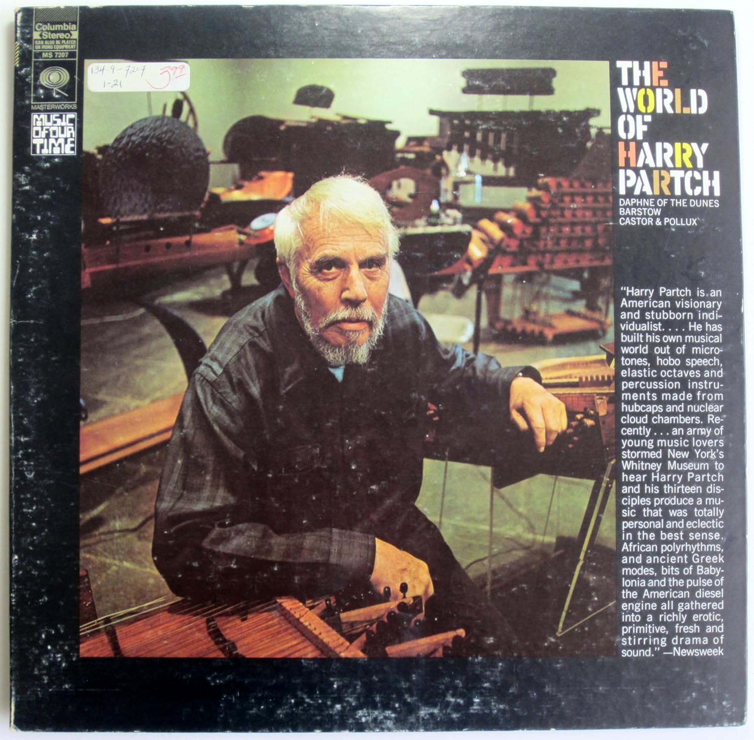 Comme toujours, Partch fait dans la simplicité. Dans les années 50, il développe des projets de plus en plus pharaoniques qui demandent des heures de répétitions et qui sont vite un gouffre financier. Lui veut juste montrer son art sous tous ses aspects mais, au bout du compte, rare sont ceux qui ont pu voir le résultat de son travail, trop difficile à mettre en place. En parallèle depuis San Francisco, Partch presse ses propres disques, fabrique ses pochettes comme aujourd’hui n’importe quel gamin du DIY. Il le fait uniquement par nécessité, n’ayant trouvé aucun label qui voulait prendre le risque de sortir cette musique de tordu.
